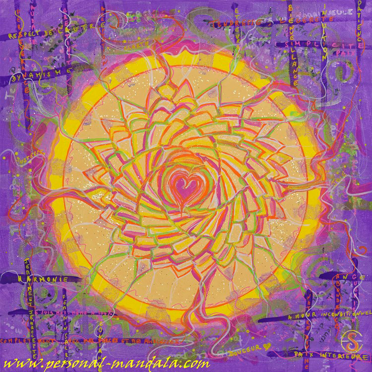 Mes grands amis depuis des années, les mandalas sont de puissant messagers, des espaces de liberté, des moyens d'expression, des activateurs de projets, des accompagnateurs vers la détente. Dans ma vision personnelle, un cercle suffit pour créer un mandala.